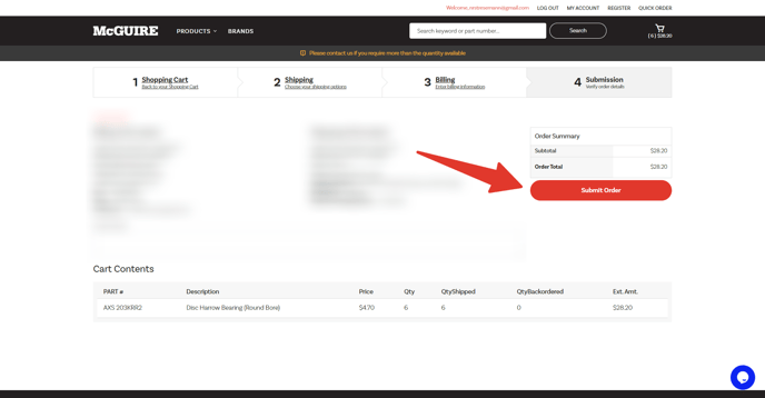 If you’d like to increase the quantity of a part ordered or add different parts to your order, you can place a second order.